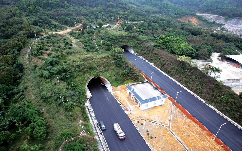 雙向六車道,單洞4821米,是目前廣東省最長的高速公路隧道,也是廣東省采用全射流通風最長的高速公路隧道。