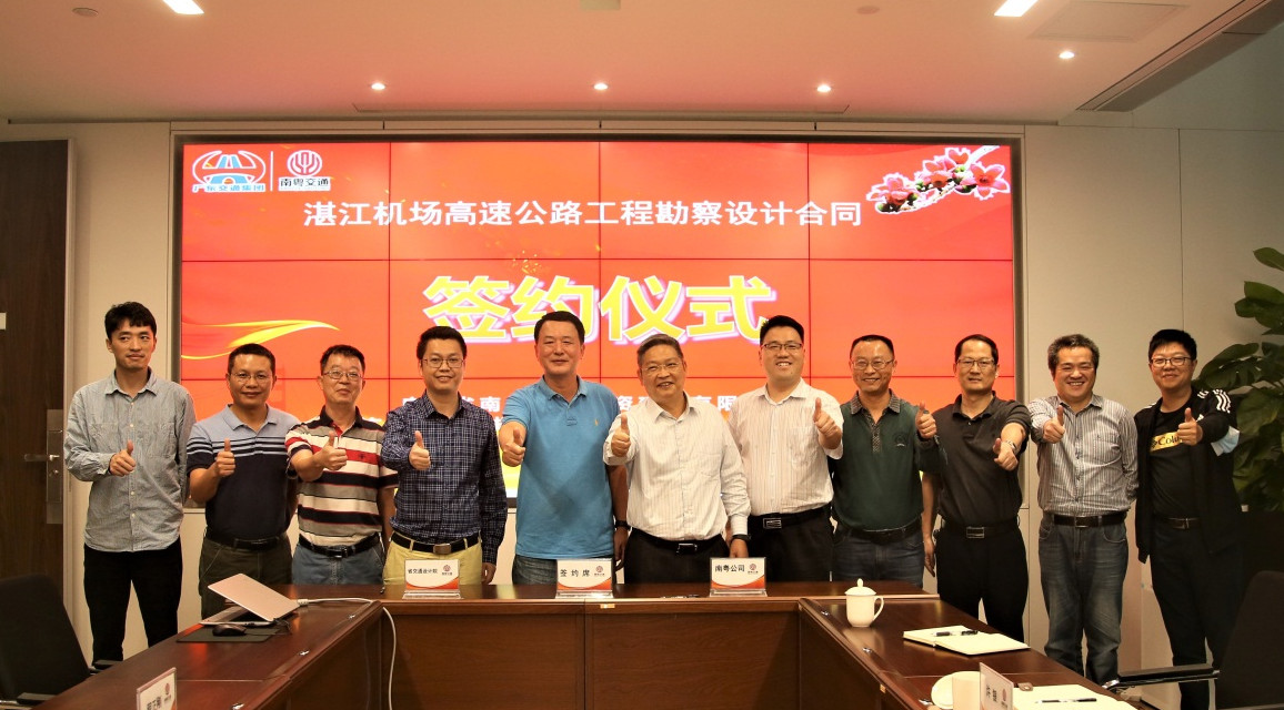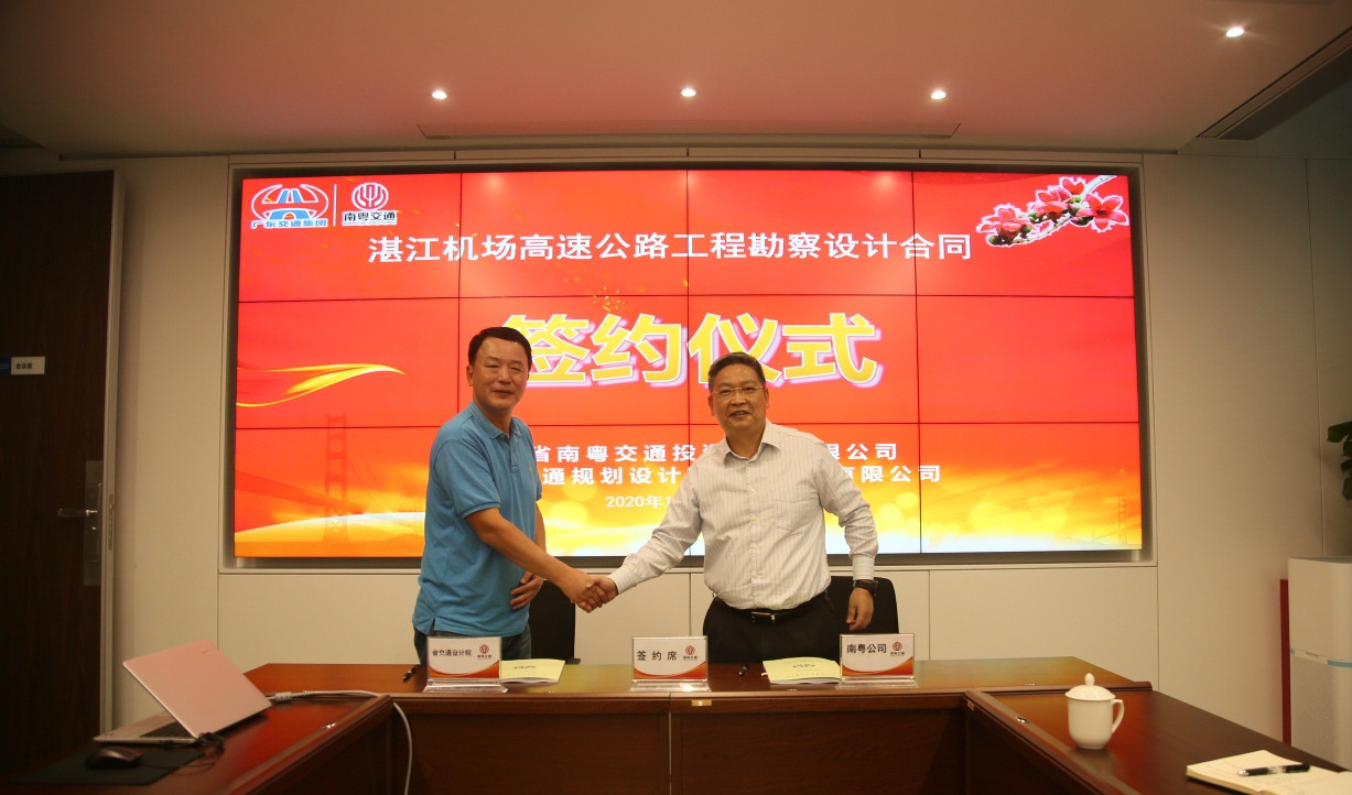 2020年10月23日,我公司與廣東省南粵交通投資建設(shè)有限公司在利通廣場(chǎng)42層隆重舉行了湛江機(jī)場(chǎng)高速公路工程勘察設(shè)計(jì)合同簽約儀式。