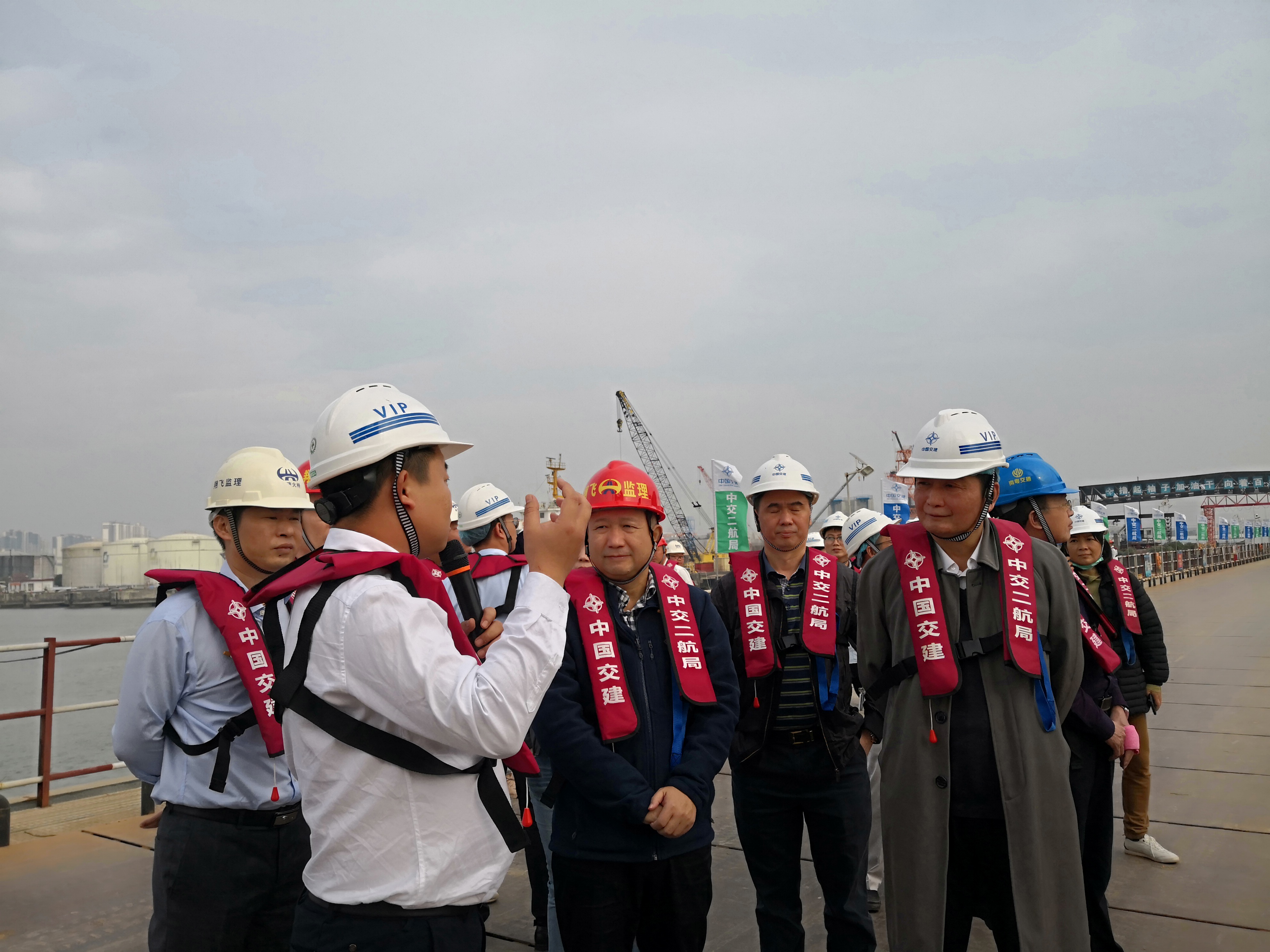 首先,大家前往東江南支流港灣大橋項(xiàng)目地進(jìn)行參觀學(xué)習(xí)。通過(guò)中交二航局項(xiàng)目經(jīng)理游川的詳細(xì)講解,我們了解到本項(xiàng)目主橋?yàn)橹骺?/span>320m的自錨式懸索橋,跨度居國(guó)內(nèi)前列,首次采用“臨時(shí)錨碇法”進(jìn)行主橋上部結(jié)構(gòu)“先纜后梁”施工,解決了自錨式懸索橋“先纜后梁”施工的諸多技術(shù)難題,為我國(guó)橋梁工程施工建設(shè)提供了重要理論依據(jù)和實(shí)用技術(shù)。作為項(xiàng)目監(jiān)理方,我們的監(jiān)理技術(shù)和手段隨著施工工藝的更新而不斷迭代升級(jí),為項(xiàng)目建設(shè)質(zhì)量保駕護(hù)航。“一橋飛架南北,天塹變通途”,作為項(xiàng)目建設(shè)者,我們倍感驕傲!