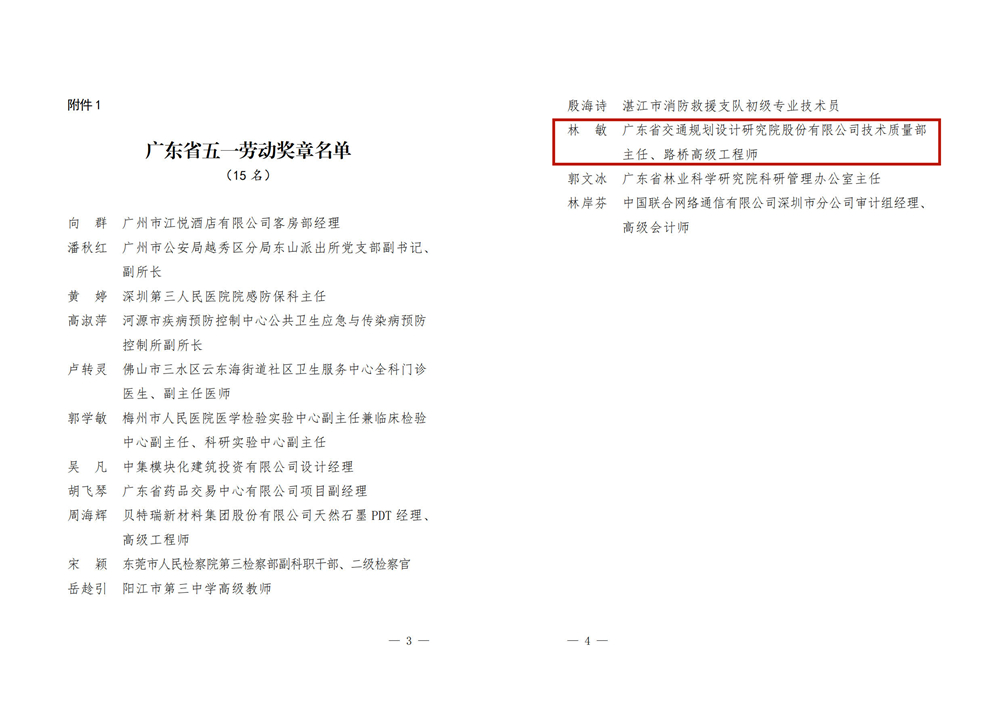 近日,為紀(jì)念“三八”國際勞動婦女節(jié)111周年,充分展示南粵女職工風(fēng)采和女性魅力,激勵廣大女職工以昂揚向上的精神面貌奮進(jìn)新時代,廣東省總工會開展了先進(jìn)女職工個人、集體評選活動,我公司技術(shù)質(zhì)量部主任林敏喜獲廣東省總工會授予“廣東省五一勞動獎?wù)隆睒s譽稱號,此次全省共有15名女職工獲得此項殊榮。省總工會號召廣大女職工向先進(jìn)標(biāo)桿學(xué)習(xí),大力弘揚勞模精神、勞動精神和工匠精神,為國家奮進(jìn)新征程、建功新時代貢獻(xiàn)南粵女職工的智慧和力量。