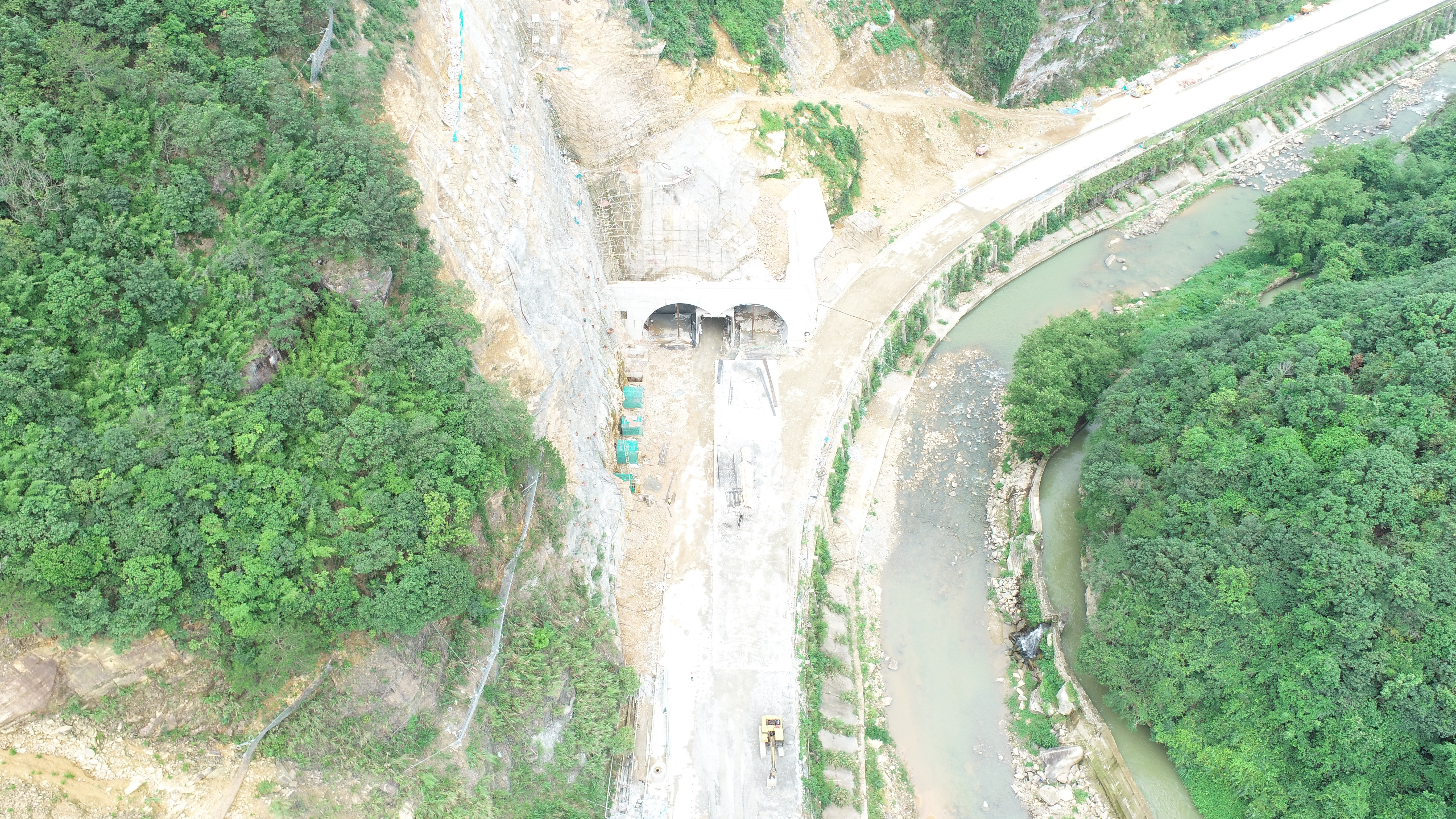該隧道所在的G105國道內莞鎮顯村至大陂村路段依山而建,每逢暴雨便極易發生泥石流、塌方等地質災害,給群眾出行帶來極大不便和安全隱患。線路右側為大席河,左側為山體。山體極其陡峭,地質條件差。受地形影響,隧道洞口邊坡高度達50m,設計及施工難度極大。