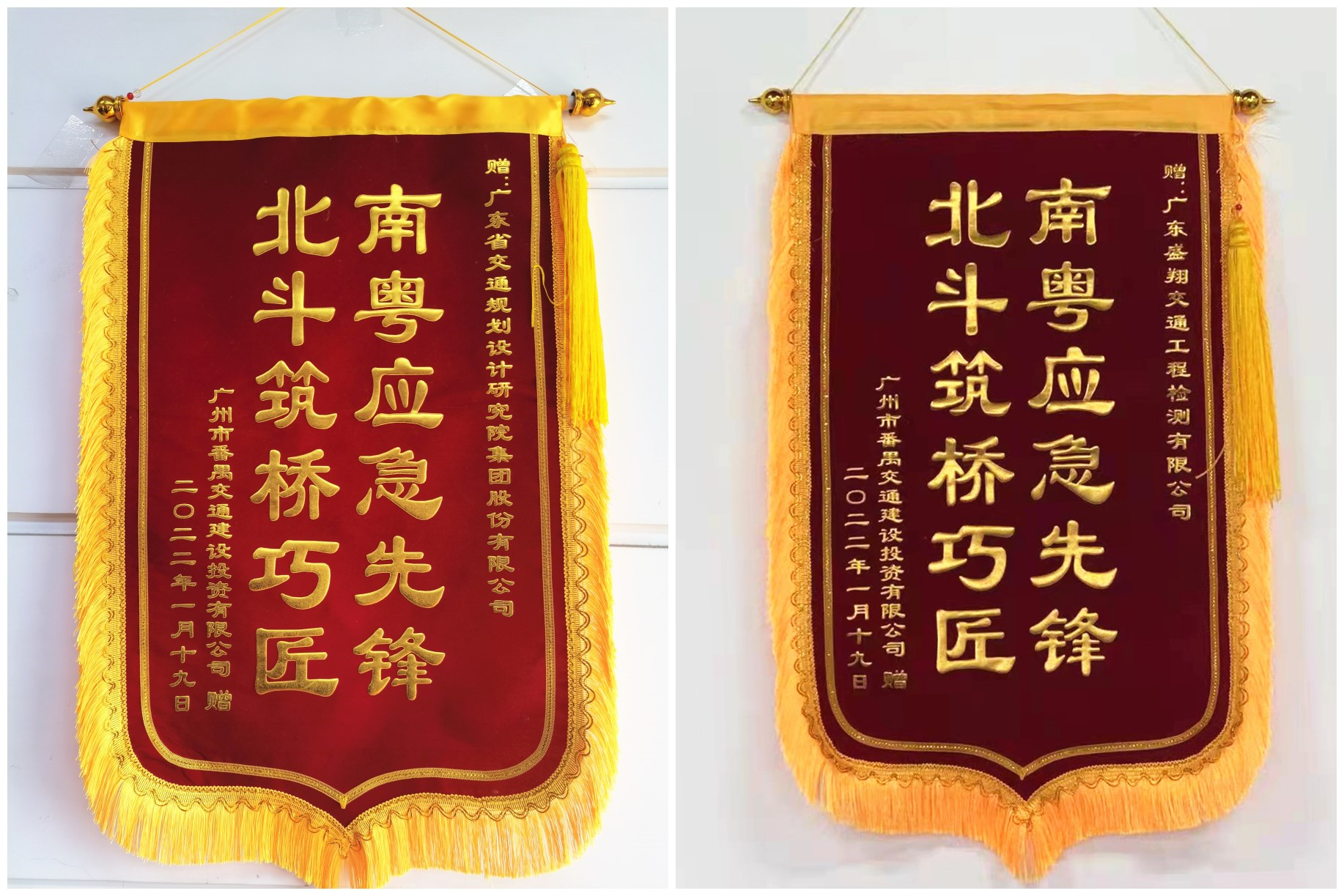1月19日上午11時,番禺北斗大橋提前3個月恢復通車。北斗大橋的重新開放,將大大減輕西樵大橋、沙灣大橋的交通壓力,提升番禺、南沙兩地居民出行的便利性。我集團與下屬二級子公司盛翔檢測公司獲授“南粵應急先鋒,北斗筑橋巧匠”錦旗及表揚信。
