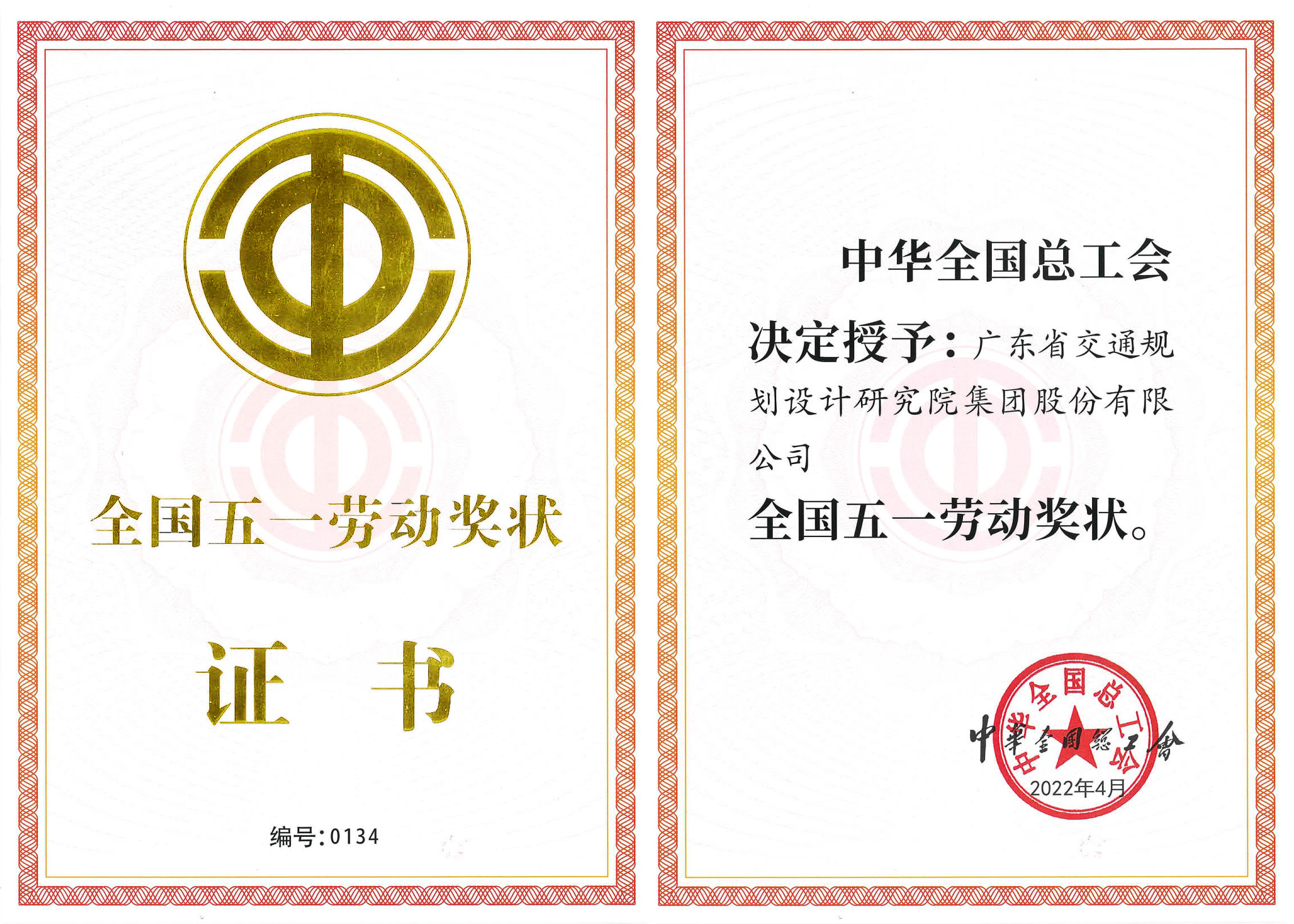 4月28日,全國總工會召開2022年慶祝“五一”國際勞動節暨全國五一勞動獎和全國工人先鋒號表彰大會,廣東省交通規劃設計研究院集團股份有限公司榮獲“全國五一勞動獎狀”。集團總經理黃湛軍代表集團在廣東分會場領獎。