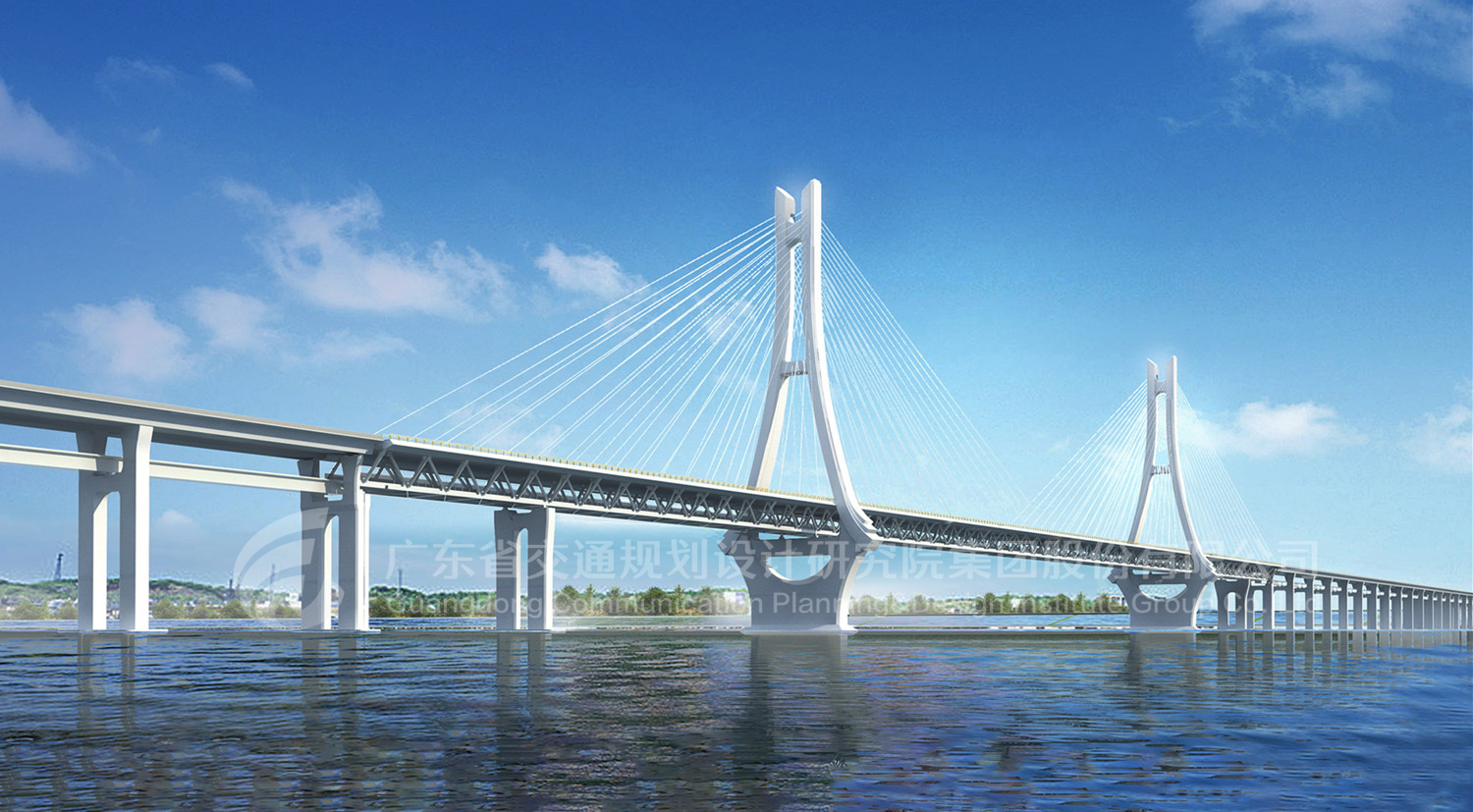 該橋景觀要求高、建設(shè)條件復雜。集團針對景觀、抗風、抗震、防腐、防撞及車橋耦合、鋼桁梁斜拉橋設(shè)計關(guān)鍵技術(shù)等開展了科研攻關(guān),確定最優(yōu)結(jié)構(gòu)方案及關(guān)鍵技術(shù)參數(shù),確保大橋安全可靠、經(jīng)濟耐久、技術(shù)先進、造型優(yōu)美。