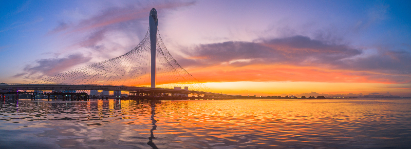 東莞濱海灣大橋為主跨200m的獨塔扭索面斜拉橋,梁寬60m,已于今年630日建成通車,是世界上首次采用“鋼-鋼殼混凝土組合混合塔”的斜拉橋,同時也是國內目前建成跨度最大、橋面最寬的獨塔扭索面斜拉橋。