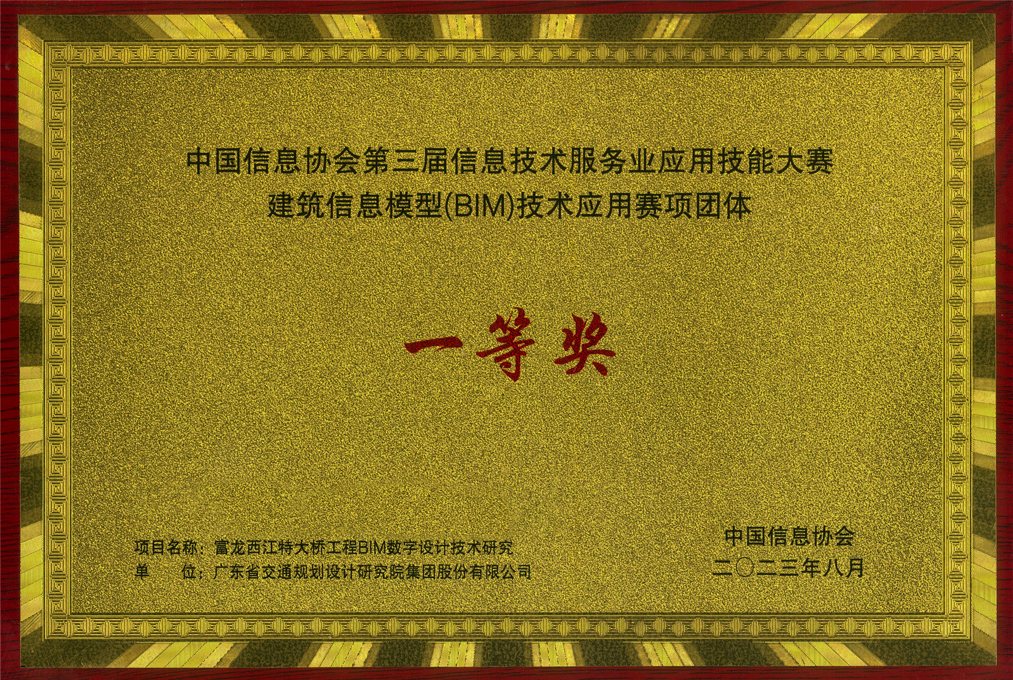 近日,2023年度中國信息協(xié)會第三屆信息技術(shù)服務(wù)業(yè)應(yīng)用技能大賽頒獎典禮在北京隆重召開。經(jīng)過選拔賽、決賽和專家審議復(fù)查,公司《富龍西江特大橋工程BIM數(shù)字設(shè)計技術(shù)研究》項目從全國各工程行業(yè)1200余個BIM參評項目的激烈競爭中脫穎而出,榮獲一等獎。這是公司首次獲得中國信息協(xié)會BIM賽項一等獎。