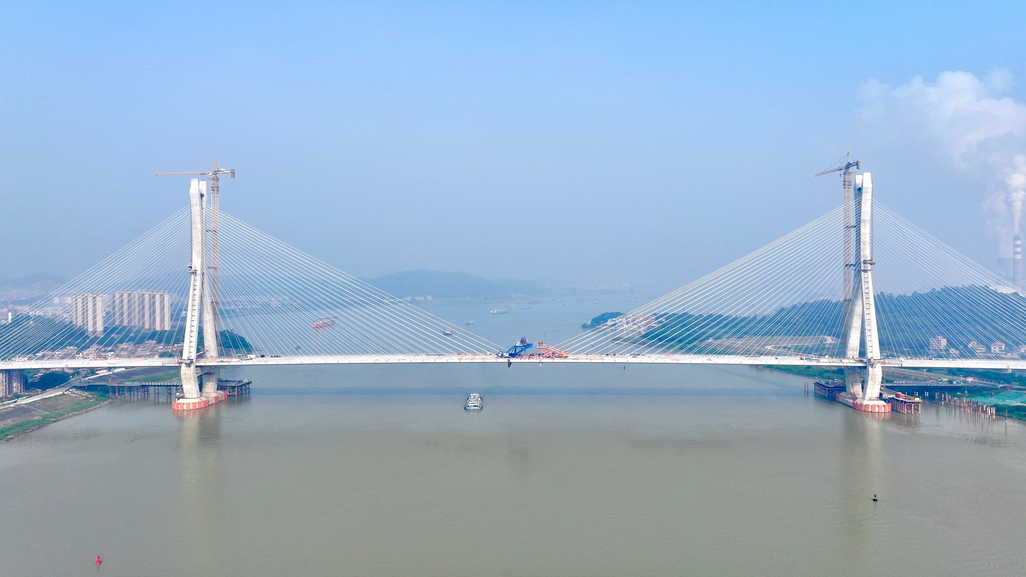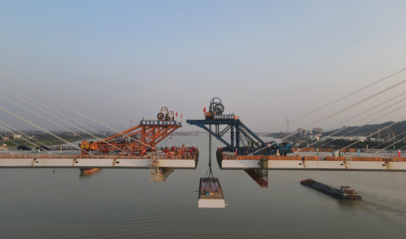 富龍西江特大橋位于廣東省佛山市境內(nèi),是佛山市“一環(huán)西拓”建設(shè)戰(zhàn)略西拓工程的重要組成部分,也是推動(dòng)粵港澳大灣區(qū)建設(shè)交通先行的重要項(xiàng)目,先后獲評(píng)2017年廣東省重點(diǎn)建設(shè)項(xiàng)目、交通運(yùn)輸部首批“平安百年品質(zhì)工程”創(chuàng)建示范項(xiàng)目、交通運(yùn)輸部2020年度交通運(yùn)輸行業(yè)重點(diǎn)科技項(xiàng)目、廣東省2020年度公路水運(yùn)工程省級(jí)“平安工地”典型項(xiàng)目等榮譽(yù)。該項(xiàng)目跨越西江航道,共設(shè)樞紐互通立交2處、主跨580米斜拉橋1座,路線全長5.81公里,設(shè)計(jì)速度80公里/小時(shí),雙向八車道一級(jí)公路,總投資38.9億元。主橋采用主跨580米的雙塔雙索面混合梁斜拉橋(鋼-UHPC組合梁+混凝土梁),跨徑布置為(69+176+580+176+69)米,全長1070米。該項(xiàng)目的建設(shè)將進(jìn)一步完善廣佛西部片區(qū)與廣佛中心現(xiàn)代綜合交通體系,推進(jìn)西江兩岸城市聯(lián)通發(fā)展,對(duì)加速沿線片區(qū)“交通融合、產(chǎn)業(yè)融合、城市融合”,完善灣區(qū)交通基礎(chǔ)設(shè)施具有重大戰(zhàn)略意義。