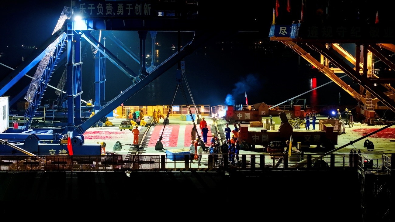 11月1日16時(shí),最后一節(jié)UHPC組合梁開始慢慢抬升。直至入夜時(shí)分,兩邊主梁完成精準(zhǔn)連接,由我公司負(fù)責(zé)勘察設(shè)計(jì)的富龍西江特大橋主橋成功合龍。這一關(guān)鍵控制性節(jié)點(diǎn)的順利拉通,為大橋通車奠定了堅(jiān)實(shí)的基礎(chǔ)。