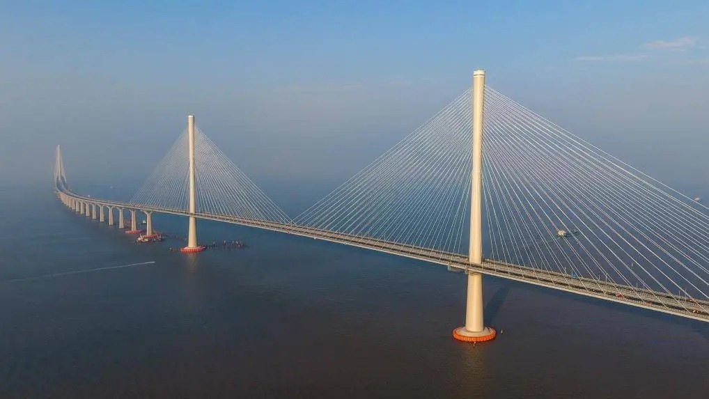 整體結構與景觀:堅持橋梁結構設計與藝術美學有機結合,工程與自然環境和諧統一,歷史人文與創新發展完美融合的理念。首創“小蠻腰”造型混凝土索塔和TY型橋墩。其中,高欄港大橋采用全漂浮體系分離式鋼箱梁結構,索塔外形采用圓形和圓端形斷面,塔基穩定堅固,塔柱動感柔美,富有韻律,塔頂設置優雅獨特的燈塔造型,標志性異常突出。