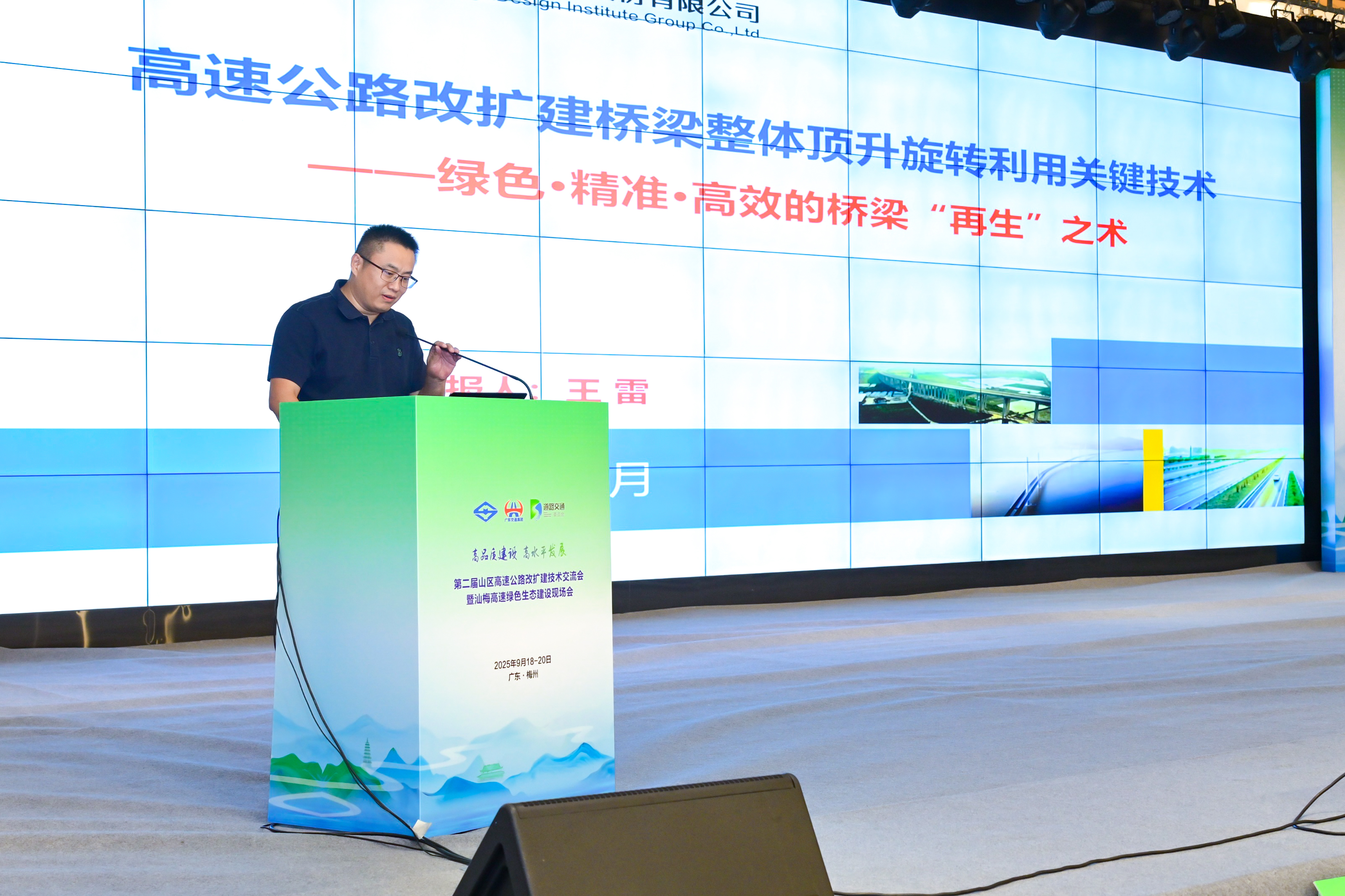 第二設(shè)計(jì)院總工程師王雷在會(huì)上作了題為《高速公路改擴(kuò)建橋梁整體頂升旋轉(zhuǎn)利用關(guān)鍵技術(shù)》的主題報(bào)告,以我司負(fù)責(zé)設(shè)計(jì)的汕梅高速改擴(kuò)建SJA3標(biāo)軒坑河大橋(6×30m簡(jiǎn)支預(yù)應(yīng)力砼T梁)為例,介紹了橋梁整體頂升旋轉(zhuǎn)利用的關(guān)鍵技術(shù),該技術(shù)通過(guò)對(duì)原有結(jié)構(gòu)的利用,實(shí)現(xiàn)了工程價(jià)值、經(jīng)濟(jì)價(jià)值與社會(huì)環(huán)境價(jià)值的統(tǒng)一。報(bào)告充分展現(xiàn)了我司在橋梁設(shè)計(jì)領(lǐng)域的專業(yè)水平和創(chuàng)新能力,獲得了與會(huì)人員的一致贊譽(yù)。
