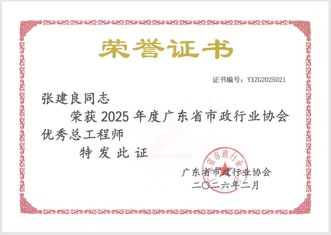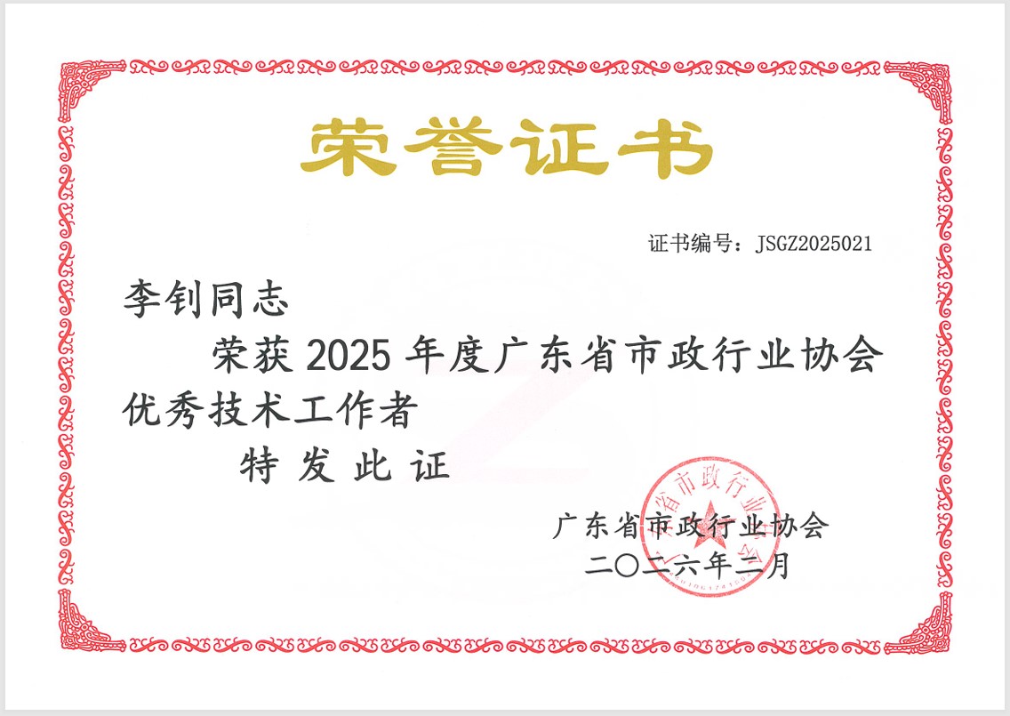 為表彰先進、樹立榜樣,激發市政行業工程技術人員的積極性與創造性,推動行業高質量發展,廣東省市政行業協會組織開展了2025年度優秀總工程師、優秀技術工作者評選活動。經過嚴格評審與層層篩選,公司副總工程師張建良憑借在給排水領域的深厚造詣與突出貢獻,榮獲“廣東省市政行業優秀總工程師”稱號;第一市政設計院副院長李釗依托在道路設計領域的扎實功底與創新實踐,榮獲“廣東省市政行業優秀技術工作者”稱號。