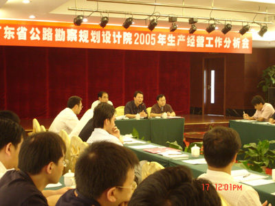 2005年9月16日至17日,院組織中層以上干部在佛山三水區國家森林公園召開了“2005年度生產經營工作分析會議”。李江山院長作主題報告,經營開發部、生產管理部、人力資源部、財務審計部負責人以及下屬翔飛監理公司總經理先后作專題發言。大會客觀地總結了上半年院在生產經營工作方面所取得的成績,并對存在的問題進行了深入剖析。會間,各與會人員還緊緊圍繞如何提升院的技術質量水平、生產經營效益和后續服務水平等方面,暢所欲言,紛紛發表自己的意見和建議,收到了很好的效果。