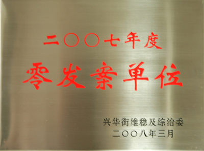 2007年,在公司經營班子的正確領導和全體員工的共同努力下,我公司狠抓治安綜合治理各項工作,全年未發生任何綜治案件和事故,近日,被廣州市天河區興華街道辦事處評為“2007年度零發案單位”,特此報喜。