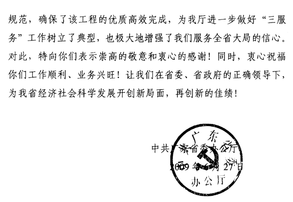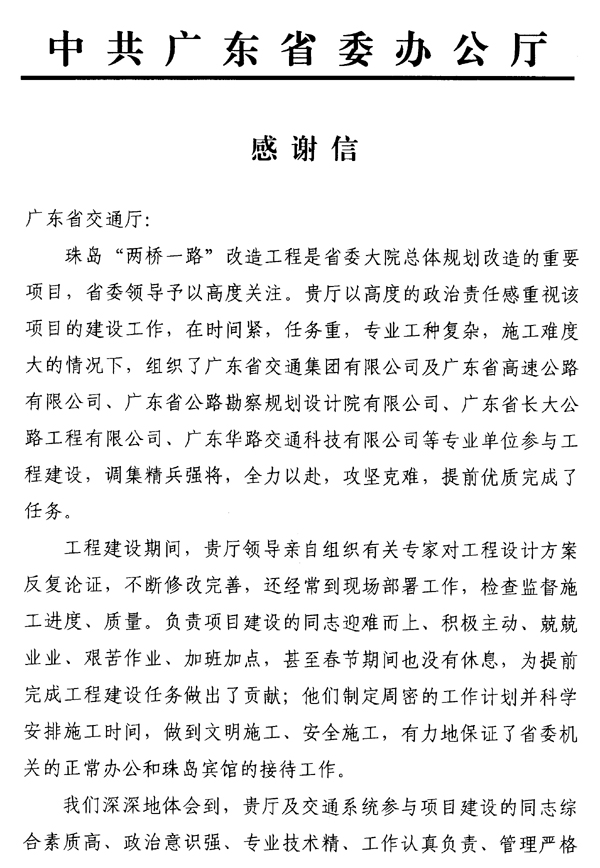 省委關于珠島“兩橋一路”改造工程的《感謝信》