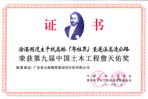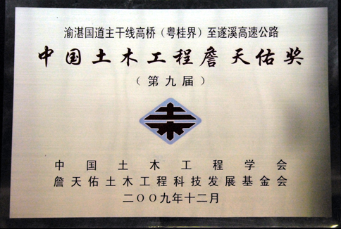 項目榮獲“第九屆中國土木工程詹天佑獎”