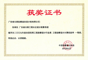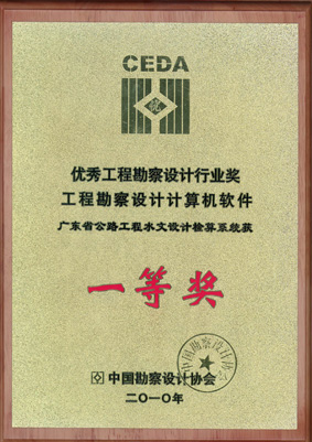 “廣東省公路工程水文設計檢算系統(tǒng)”項目榮獲“2009年度全國優(yōu)秀工程勘察設計行業(yè)獎工程勘察設計計算機軟件一等獎”