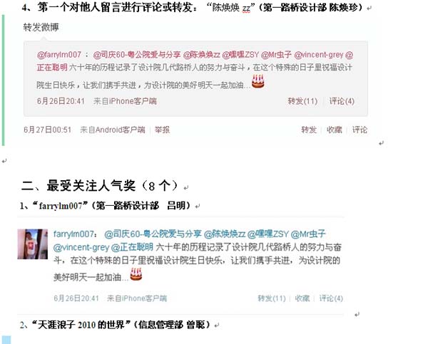 公司“司慶微(博)祝福互動”活動獲獎名單揭曉