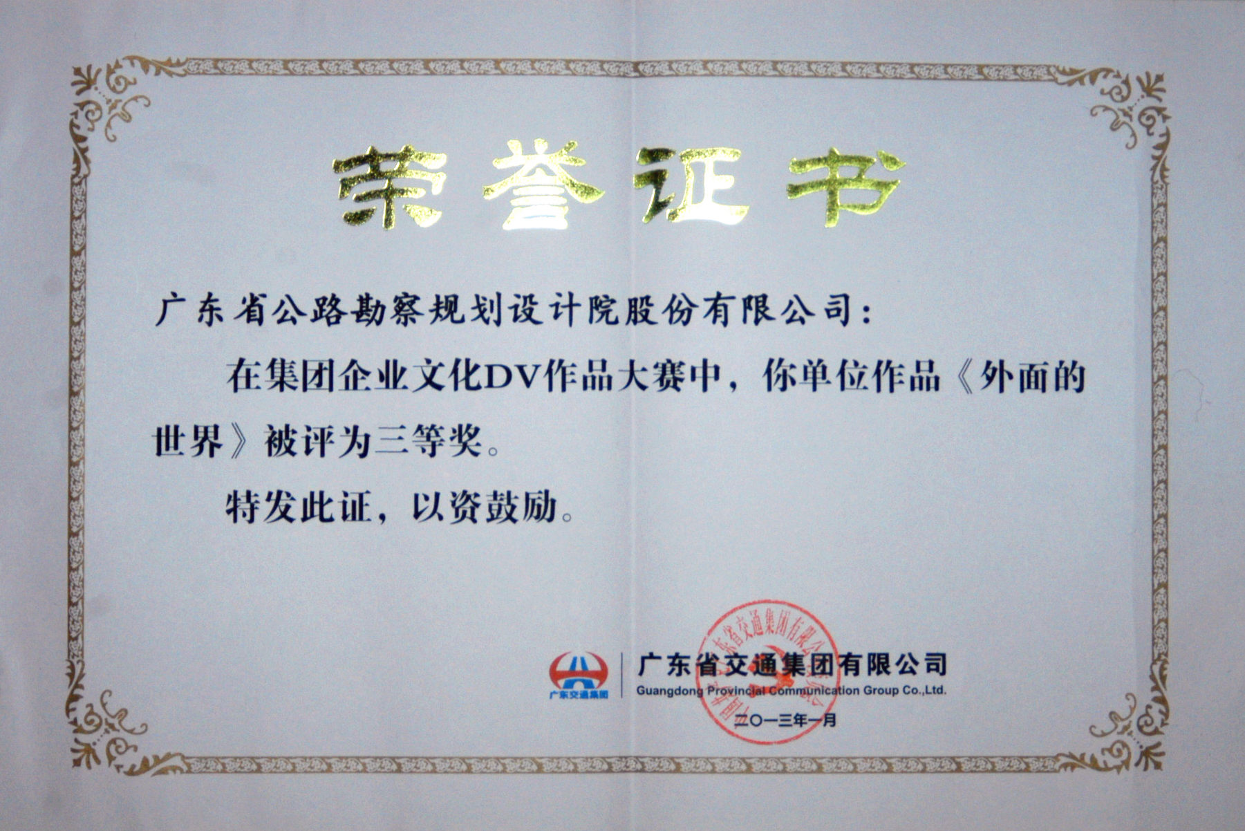 省交通集團企業文化DV作品大賽獲獎名單近日揭曉,我司共推薦了7件DV作品參選,其中,由行政事務部張安靜編輯制作的《外面的世界》在眾多優秀作品中脫穎而出,榮獲本次比賽三等獎。