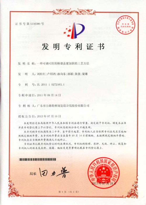 1、“一種可調可控的橋墩蓋梁加固的工藝方法”,被授予發明專利權。