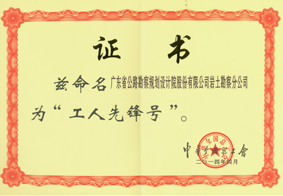 熱烈祝賀公司巖土勘察分公司榮獲全國“工人先鋒號”榮譽稱號