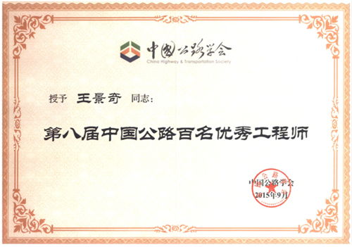 公司王景奇副總工程師近日榮獲“第八屆中國公路百名優(yōu)秀工程師”稱號,并在不久前召開的2015年中國公路學(xué)會學(xué)術(shù)年會上獲得了表彰。特此祝賀!