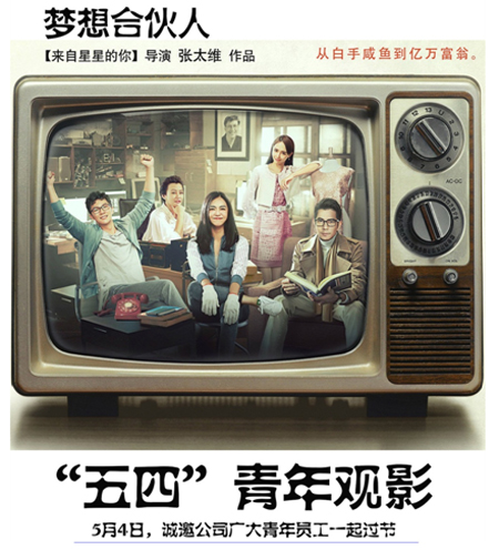 為了讓公司青年員工更好地學(xué)習(xí)并弘揚(yáng)五四精神,5月4日晚間,公司組織青年員工到飛影電影城觀看了青春勵(lì)志電影《夢(mèng)想合伙人》,讓公司青年員工度過(guò)了一個(gè)有意義的節(jié)日。