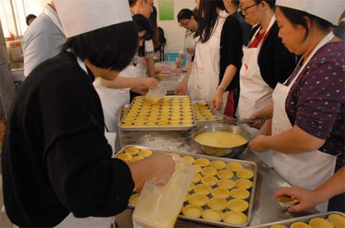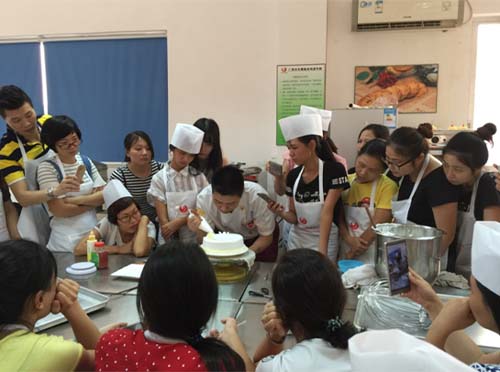 學習品種包含但不局限于慕斯、蛋撻、雪媚娘、酥皮面包、紅豆面包、戚風蛋糕、抹茶布丁、蔓越莓餅干、酥皮奶油泡芙等。專業西點師不僅在操作前講解如何選用原材料、原料配方、操作重點、注意事項,讓學員從基礎學習,輕松掌握;還在現場示范制作流程,零距離,手把手教學,讓一切變得簡單易懂,一學就會。廣大學員通過親手烘焙加工,自制的紅豆吐司面包、奶油蛋糕新鮮出爐,色香味俱全。大家看著出爐的精致成品,欣喜不已,相互品嘗比較,好一派熱鬧。