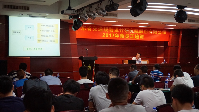 本課程由第三路橋設計分公司總工程師程正剛講授。程總介紹了公路勘察設計的工作流程、主要內容及注意事項,分享了其多年的設計經驗和心得體會,強調了設計者的責任擔當,引導新員工要為工作做好思想準備和技術準備。