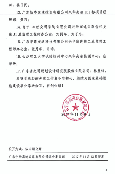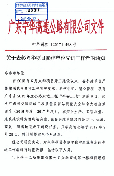 興華項目自2015年5月開工建設以來,獲得廣東省2015年度公路水運工程“平安工地”示范項目、兩次廣東省交通運輸工程質量監督站質量安全綜合大檢查第四名(2016年度、2017年度)。并于2017年9月28日通車,較計劃提前三個月。