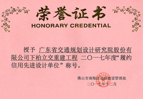 近日,佛山市南海區道路建設管理處組織召開了2017年度總結表彰大會,我司因佛山分公司承擔的下柏立交工程項目表現突出,被授予2017年度“履約信用設計單位”稱號,佛山分公司總經理萬歡代表領獎。同時,下柏立交重建工程項目負責人兼設計代表李泉彬,工作突出,榮獲2017年度南海區道路建設管理處“優秀設計代表”稱號。