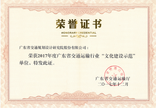 近日傳來喜訊,公司被廣東省交通運輸廳評為2017年度廣東省交通運輸行業“文化建設示范”單位。