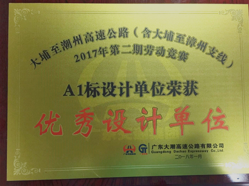 公司榮獲大潮高速第二期勞動競賽優秀設計單位