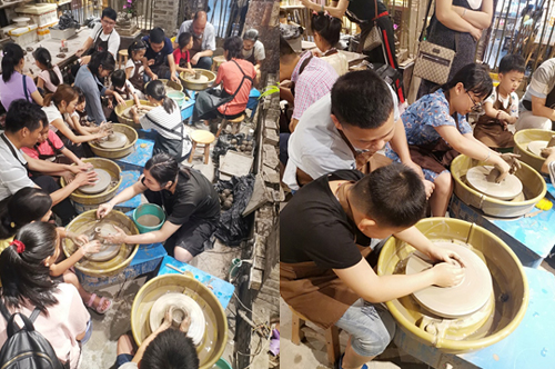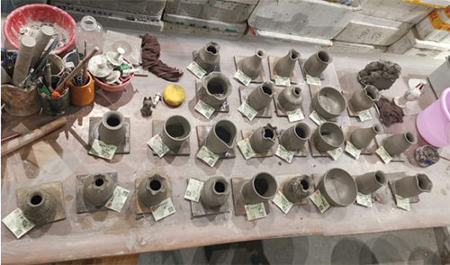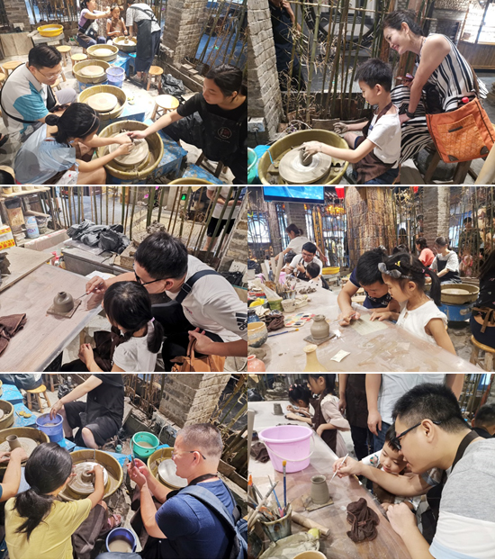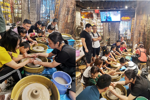 活動(dòng)現(xiàn)場(chǎng),各位同事帶著子女,在專業(yè)老師的講解和指導(dǎo)之下,一起拉坯、刻畫,親手制作出獨(dú)一無二的陶藝作品。一個(gè)個(gè)形狀、花紋各異的陶瓷坯件之上,都凝結(jié)著一段段獨(dú)特的回憶以及一份份珍貴的親子情。