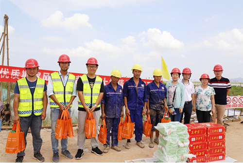 8月22日,公司副總經(jīng)理、工會主席李琴,公司總經(jīng)理助理、綜合管理辦公室主任、工會副主席陳賢文,公司副總工程師、技術(shù)質(zhì)量部主任王強(qiáng),巖土勘察分院副院長林少忠以及技術(shù)質(zhì)量部副主任劉祥興,代表公司工會赴珠海市金灣區(qū)平沙鎮(zhèn),對黃茅海項(xiàng)目外業(yè)一線勘察人員進(jìn)行“送清涼”慰問。