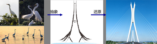 (2)橋塔采用獨創性的白鷺塔方案。創意靈感來源于佛山市白鷺湖風光,以優雅對唱的白鷺形象勾勒出橋塔柔和的外形,景觀效果突出,與佛山文化高度契合。