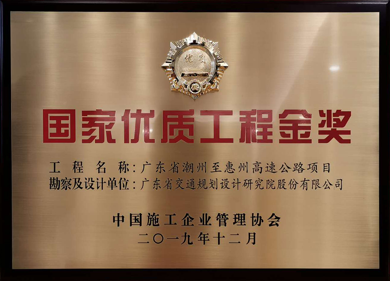 近日,由我公司負(fù)責(zé)勘察設(shè)計(jì)的廣東省潮州至惠州高速公路項(xiàng)目榮獲“2018—2019年度國家優(yōu)質(zhì)工程金獎(jiǎng)”。