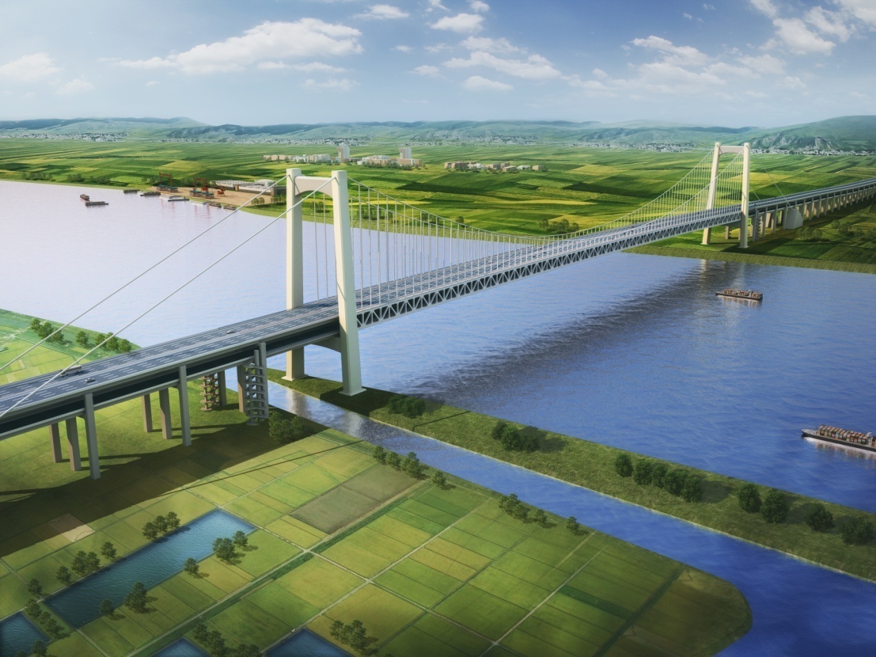 橫門特大橋采用了高速公路與民古路合建的雙層橋梁,上下層均為雙向八車道標準。主橋初步推薦采用主跨880米的單跨懸吊鋼桁梁懸索橋;主桁為華倫式桁架。全纜跨度布置為290+880+290=1460m,邊主跨比0.33,矢跨比1/10。