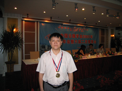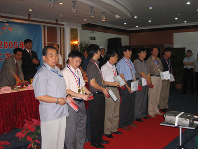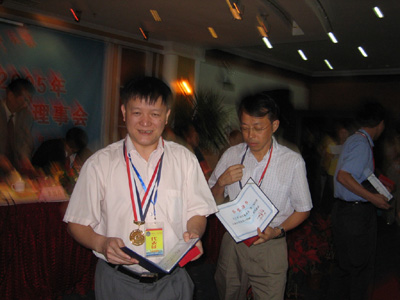金秋八月,中國公路學會在新疆烏魯木齊市隆重召開了2005年學術年會暨六屆二次理事會,開幕式后會議舉行了“第三屆中國公路百名優秀工程師”頒獎儀式,我院彭向榮副總工程師作為廣東省唯一獲此殊榮的工程師參加了此次大會,并受到表彰。 彭向榮副總工在領獎臺上 彭向榮副總工微笑著向我們走來 彭向榮副總工戴上了金閃閃的獎章 彭向榮副總工與廣東省交通廳陳冠雄副廳長(左二)等領導合影留念