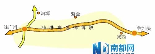 省交通集團(tuán)介紹,揭博高速項(xiàng)目于2013年6月正式動工,計(jì)劃2015年底完工通車,將成為廣州連接汕頭的第二條高速公路。通車后,河源紫金、揭陽揭西兩縣也將雙雙告別沒有高速公路的歷史。據(jù)悉,目前的深汕高速是雙向4車道,限速100公里,而揭博高速將設(shè)雙向六車道,限速120公里。