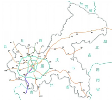 三環:以渝北區為起點沿逆時針方向依次是渝北-北碚-合川-銅梁-大足-永川-江津-綦江-南川-武隆-涪陵-長壽。